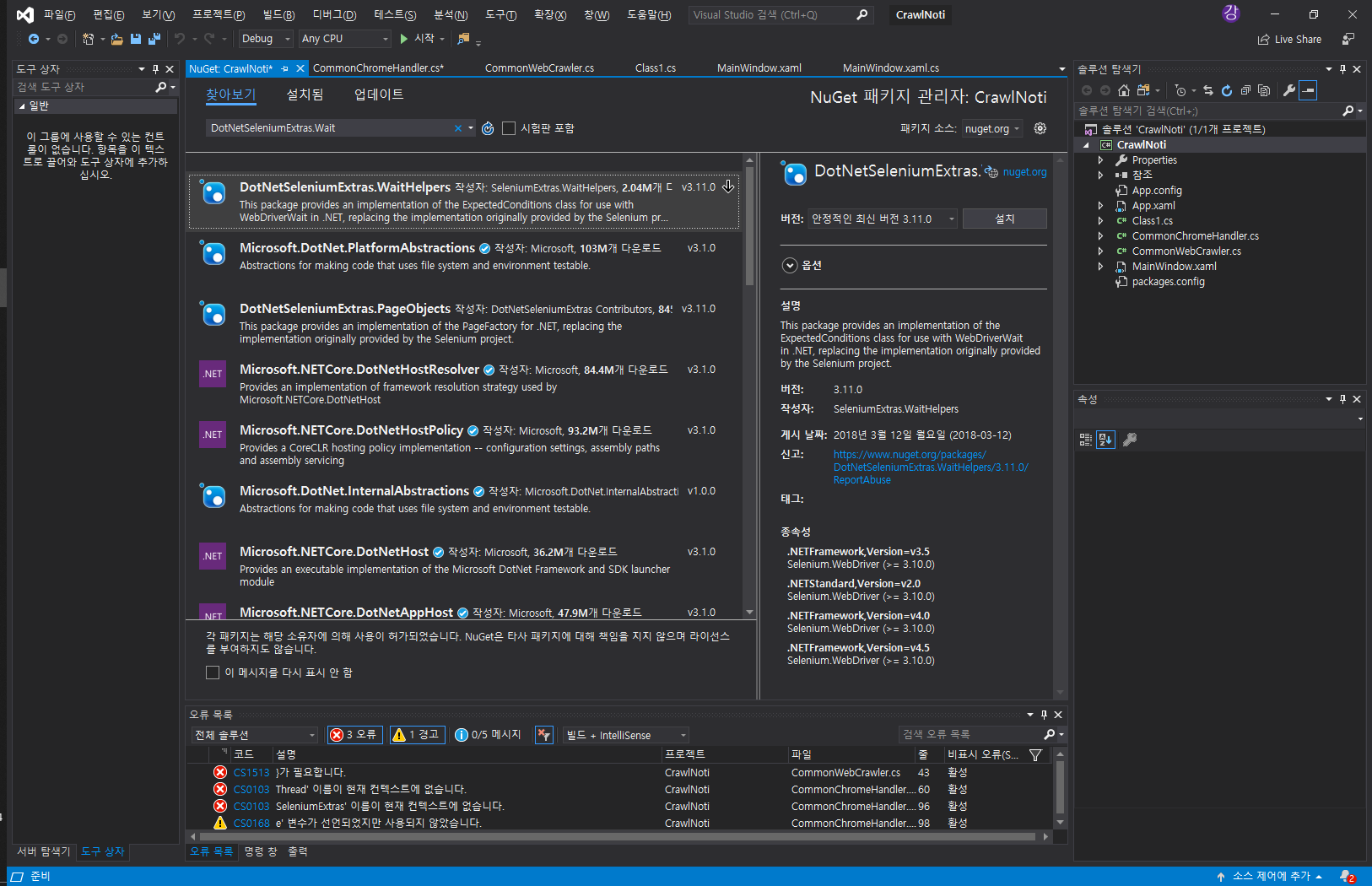 1.4) DotNetSeleniumExtras.WaitHelpers 설치