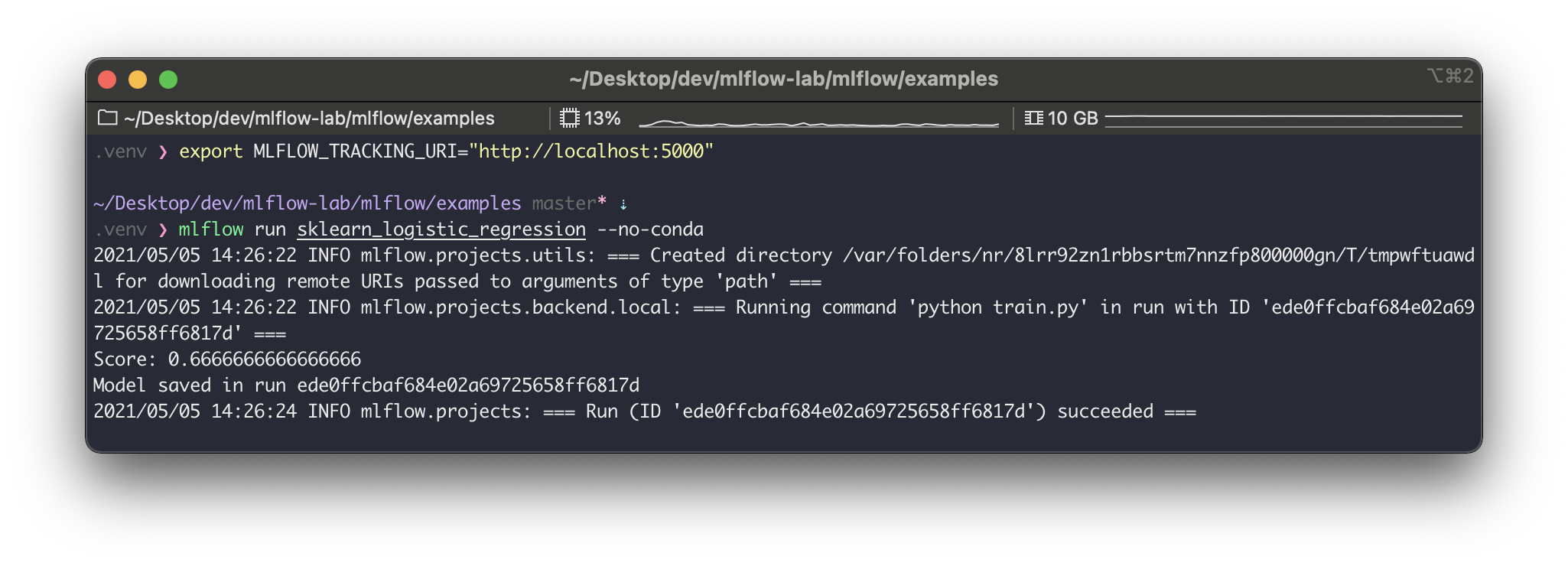 $ export MLFLOW_TRACKING_URI="http://localhost:5000"
