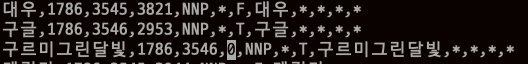 - 1785,3543,4267 : 좌문맥ID, 우문맥ID, 단어비용 (자동 생성 처리로 입력)