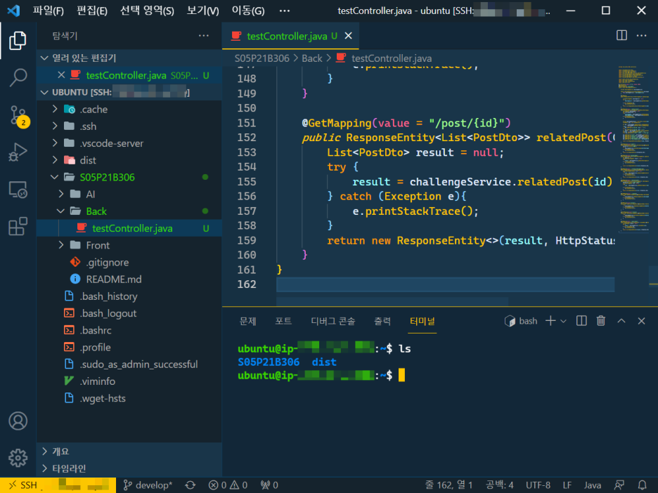 1) 왼쪽 확장탭에서 Remote-ssh를 검색하여 설치한다