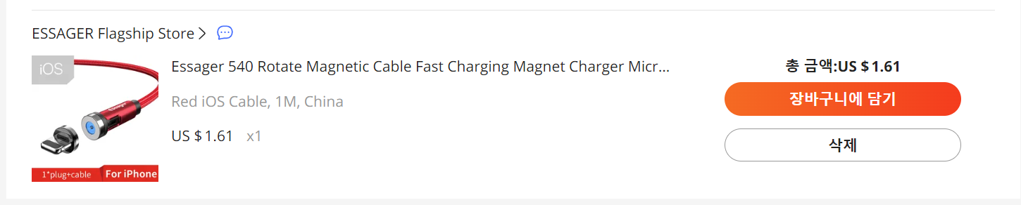 ★ 위에 있는 자석케이블인데, 위에껀 끝이 둥글고, 이건 네모다. 근데 다 부서진다. 사지 말것.