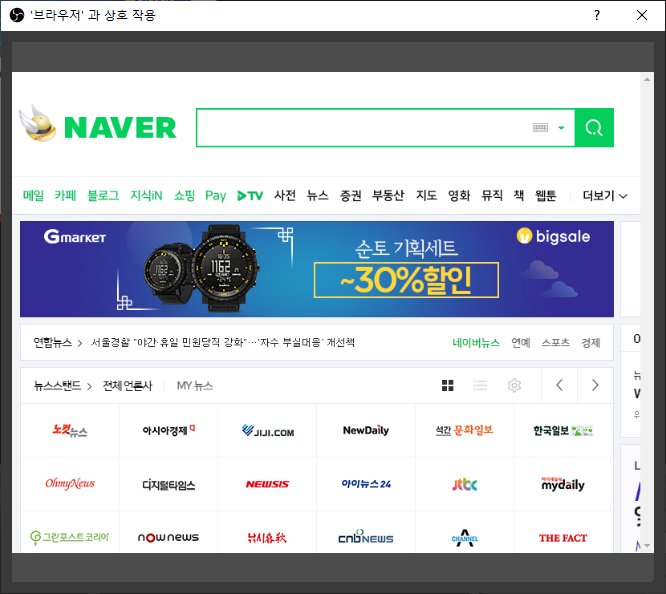5) 아래와 같이 브라우저 팝업이 뜨며, 브라우저 팝업을 사용할 수 있음.