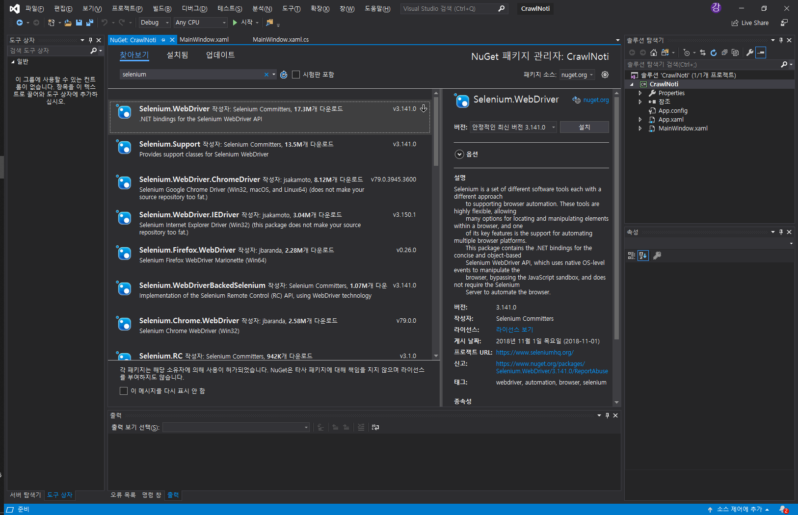 1.1) Nuget 에서 Selenium.WebDriver 설치