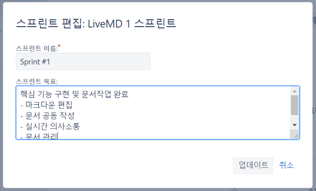 스프린트 편집 버튼을 선택해서