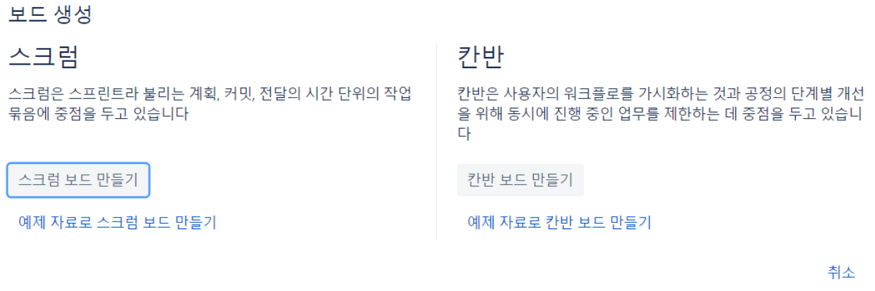 스크럼 또는 칸반 형식 선택