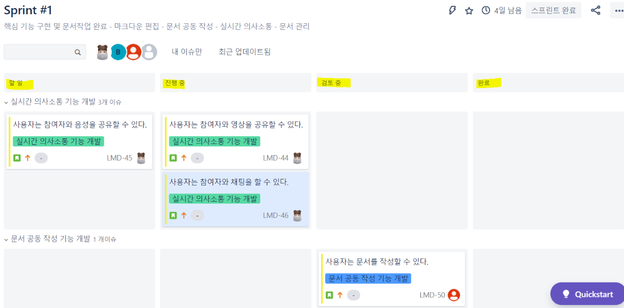 활성 스프린트를 선택하면 진행중인 스프린트에 할당된 백로그만 볼 수 있다