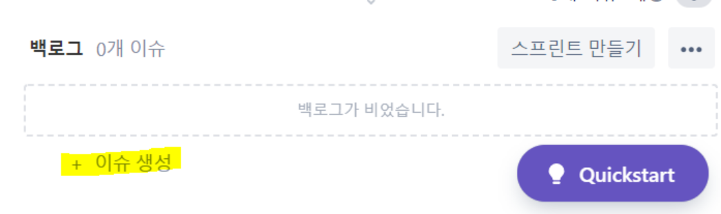 백로그 작성을 위해 이슈 생성 버튼 클릭