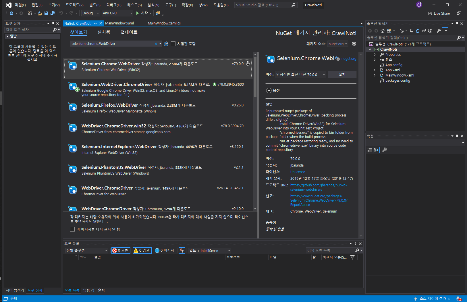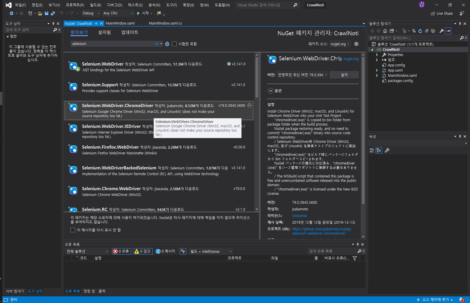 1.3) Nuget 에서 Selenium.WebDriver.ChromeDriver 설치
