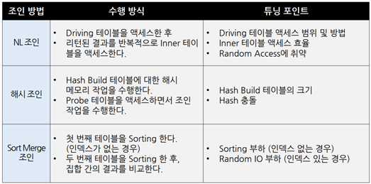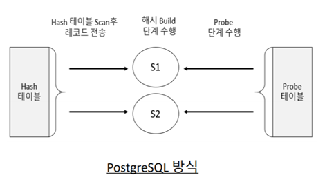 PostgreSQL에서 지원하는 조인 방법 ▪Nested Loop조인 ▪Sort Merge조인 ▪해시 조인(Hybrid해시 조인 지원)