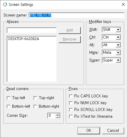 아이콘을 더블 클릭해서 Screen name 부분에 Cline 의 아이피를 입력해야 접속 허가가 된다.
