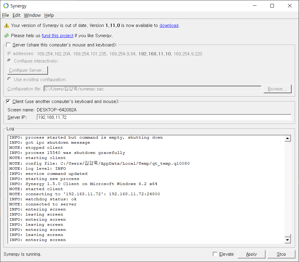 1) synergy-1.5.0-r2278-Windows-x64.msi 를 두 컴퓨터에 모두 설치