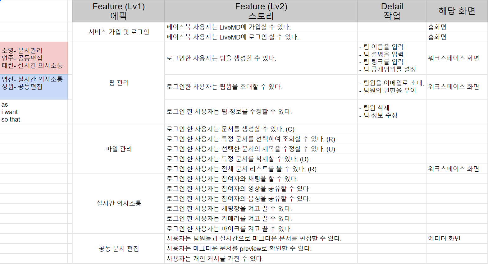 제가 플젝할때 작성했던 백로그 목록을 예시로 들고와봤슴다