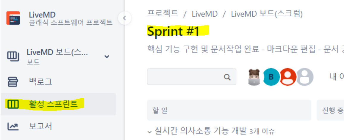 활성 스프린트를 선택하면 진행중인 스프린트에 할당된 백로그만 볼 수 있다